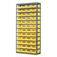 These economical shelving systems include Akro-Mils' polypropylene shelf bins