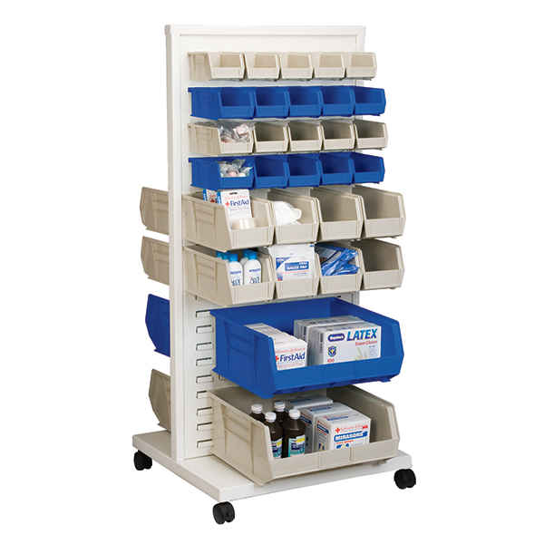 Carts • Organize, share and transport supplies and products • Perfect for “high demand” items • Panel locks into posts on base easily and without tools • Wt. capacity 150 lbs. • Easy Installation