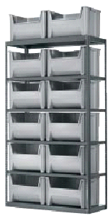 Bin Units - Small parts storage Medium weight capacities. 12" and 18" Deep Units x 75" high |
