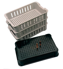 Ideal for the cleaning, storing and inventory of small parts. MFG Tray Co. reinforced composite containers are not affected by oils, grease, degreasing operations, or cutting oils. Designed for a heavy payload, and easily cleaned in hot water or steam using standard industrial detergents.